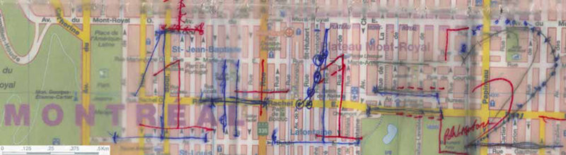 The aim of this project is both to analyze the implications on information theory of layered messages and to look at the digital/real world interface. This consists of 214 individually designed pages, each consisting of one line of a manifesto that I wrote. These were then placed on the streets of Montreal so that the locations, in plan view, form a mathematical statement made out of my handwriting (a un-anti-alised font to match the city grid at font size 2,250,000 pts).