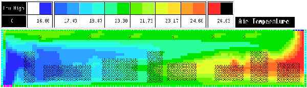 Although packaged software systems do allow the visualisation of more complex interactions. The images below show the use of thermal modelling programs to analyse the temperature and loads to different areas of a building. These can also be used for CFD to examine visually the air movements and heat transfers within a space.