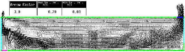 For complex solutions the level of analytic investigation is higher. Below is an example of where I have used CFD to examine the air movements and temperatures in a rather simplified model of displacement ventilation. The sketch indicates the ideal that we are trying to achieve in this situation.